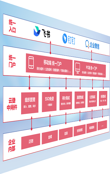 对协作平台提供支持服务,,支持企业应用与协作平台对接,,包含组织同步、、、、消息集成、、、待办集成等。。。支持目前主流的协作平台:钉钉、、、企微和飞书。。。。